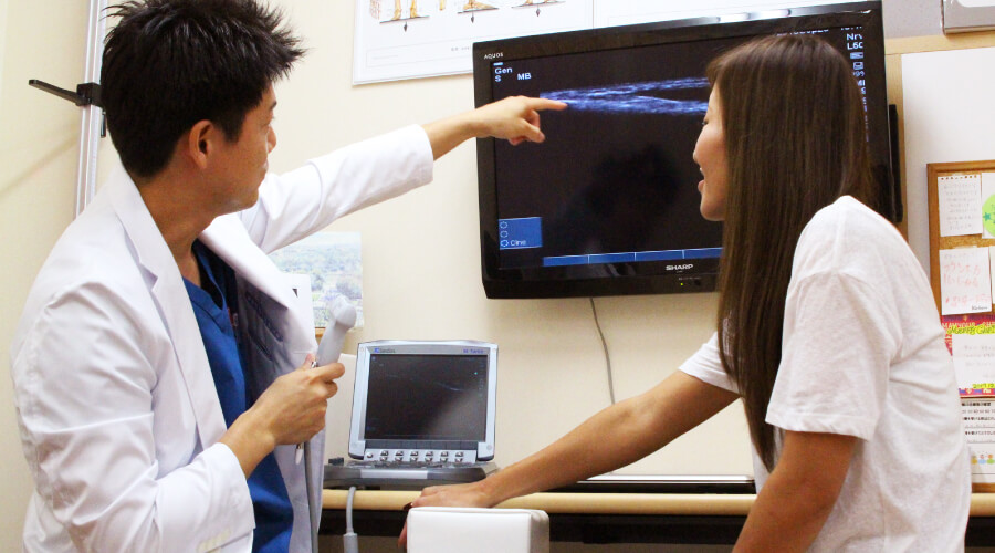 初回にお怪我の具合をみて専門医の診断が必要と判断した場合は応急処置を行い近隣の連携させていただいている整形外科、病院に紹介させいただきます。