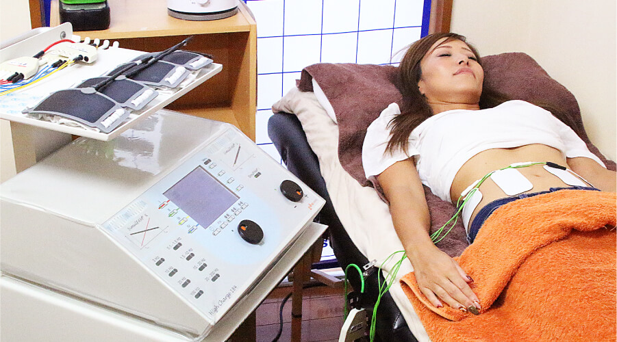 とても微弱な電気をお身体に流して痛みの緩和をしていきます。感覚はたまに少しピリっとするくらいですが、電気が苦手という方には全く感じない程度にもコントロールできます。しかも強くても弱くても効き目は同じにする事ができます。