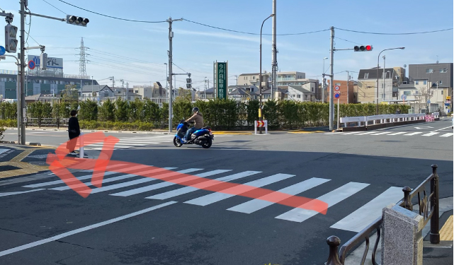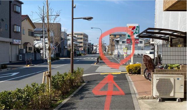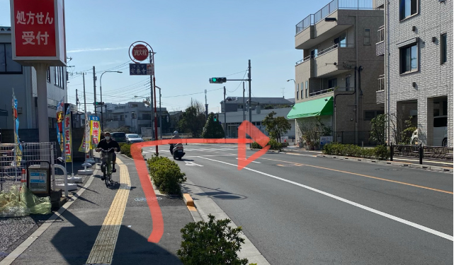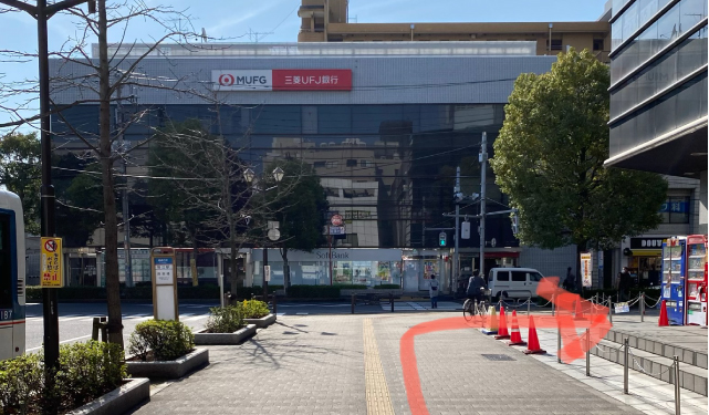 2.正面に三菱UFJ銀行が見えたら右方向に進んでください。